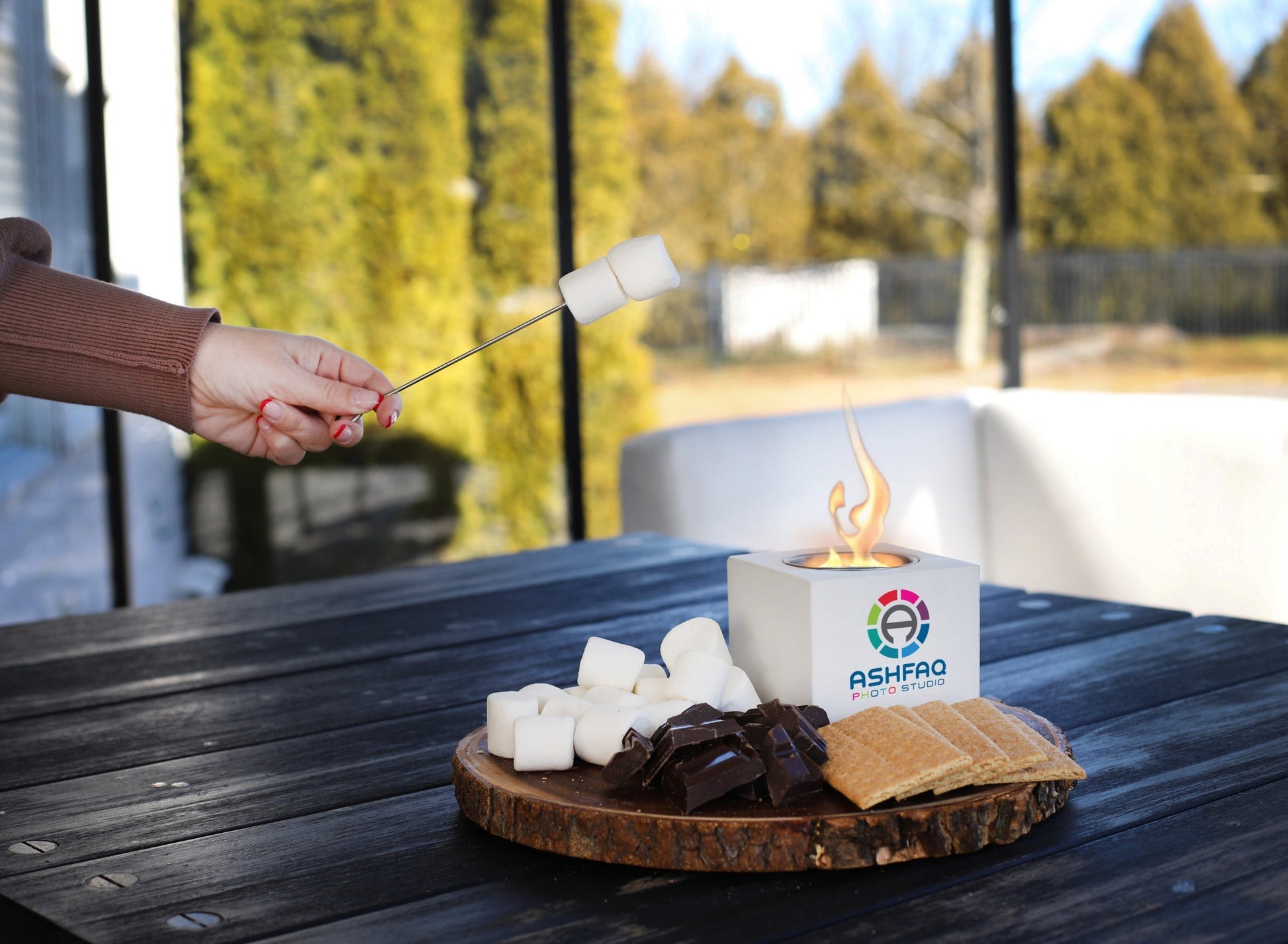 Introducing our stylish tabletop firepit, perfect for indoor or outdoor use. With its sleek design and cozy flames, it's great for gatherings or quiet nights in. Compact and easy to use, it adds warmth and charm to any space. Upgrade your atmosphere with our chic tabletop firepit today!